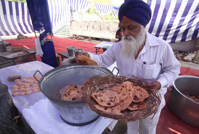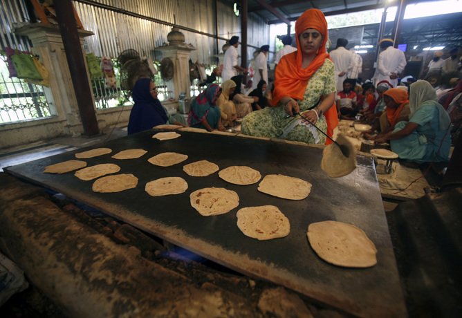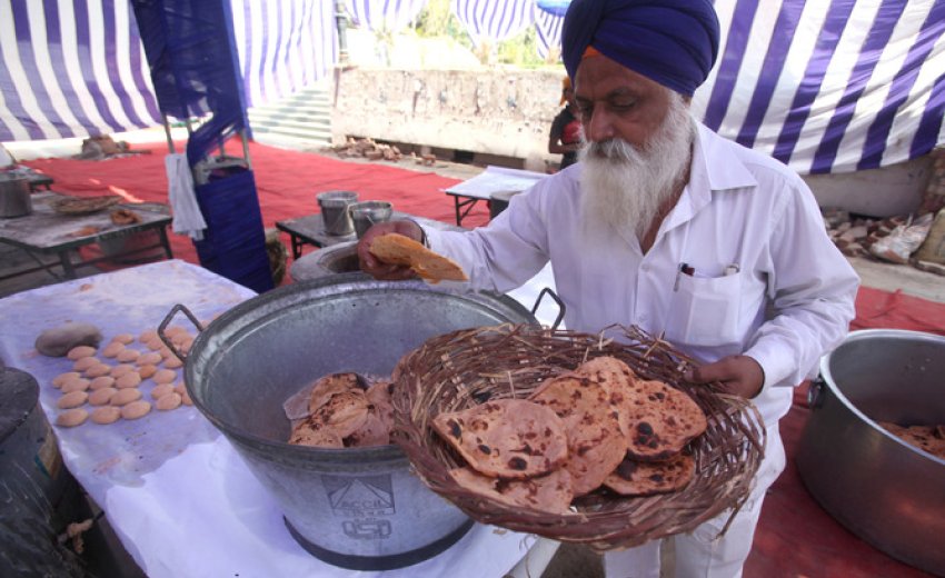 The practice of langar at Gurudwara Bangla Sahib, Delhi.