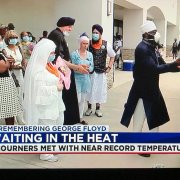 Visitors stood in line for hours and braved COVID-19 and soaring temperatures to pay homage to Floyd. They parked and walked a sizable distance, stood in line, and waited — all while wearing a mask in a heat index over 103 degrees. Some struggled — pushing walkers in the heat or gingerly limping in the overpowering sun. A few succumbed and were taken away by ambulance.