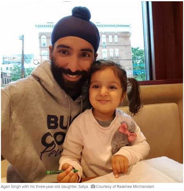 Let me break it down for you: Satya is an adorable almost three-year-old girl with more personality than can fit in her tiny little frame. She likes animal print, cat sweatshirts, and unicorn sneakers. Agan is a handsome six-foot-tall Sikh man, complete with a beard, mustache and turban. Everything about him is on the straight and narrow, including his uniform of plaid shirts, jeans, and Converse. How exactly would this work?