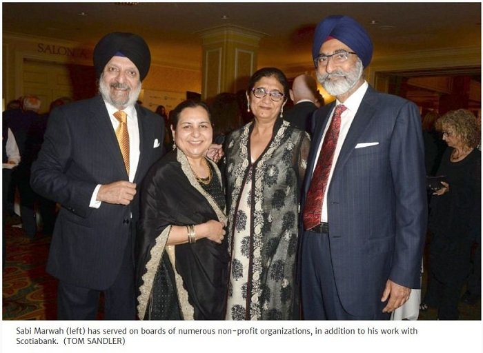 Marwah retired as vice chairman and chief operating officer at Scotiabank in 2014, wrapping up a career that stretched more than 35 years at the bank. Marwah has been active outside the workplace, serving on the boards of non-profit organizations, such as the C.D. Howe Institute, the Royal Ontario Museum, the United Way Campaign, the Toronto International Film Festival and the Hospital for Sick Children. He is a founding member of the Sikh Foundation.