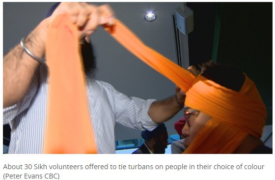 So volunteers with the Sikh Students' Association and the World Sikh Organization of Canada decided to host a turban tie-in. Anyone could choose their own colour of turban and have it tied by a volunteer.