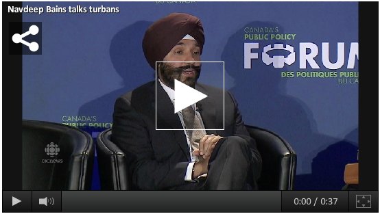 During an event on innovation and economic growth in Ottawa earlier in the day, Bains said he also matches the turbans with policy "messages."