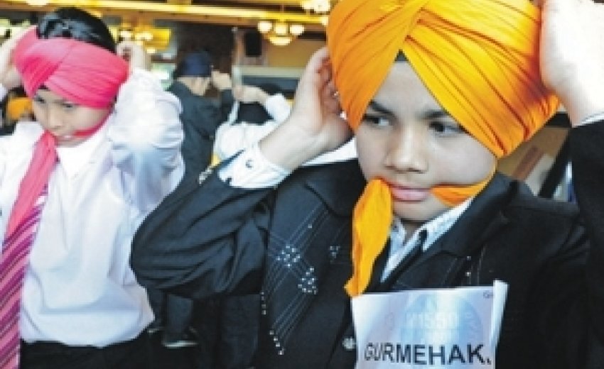 | Boys tie their turbans at Monday's Annual Turban Competition at Surrey's Bombay Banquet Hall. Photograph by: Les Bazso, PNG, Vancouver Sun |