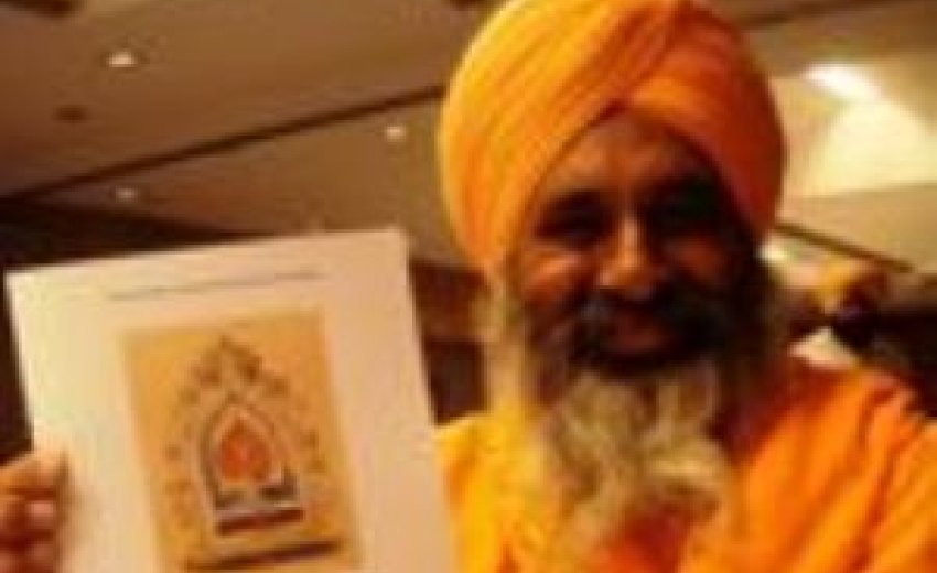 | Baba Balbir Singh Seechewal, a Sikh environmentalist activist, holding the 5 year Sikh plan |