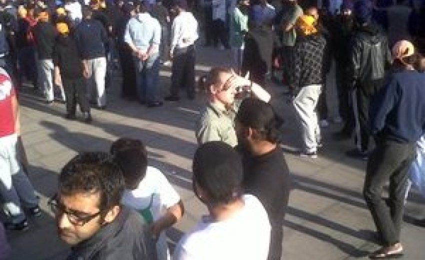 By mid-afternoon on Tuesday, the collaborative efforts resulted in an announcement to meet at Park Avenue Gurdwara in Southall at 6pm. I fled work at 5 running to catch tube and train, with the optimistic expectation of an organized meeting and some real unity. Whilst I found the latter, to the credit of every Sikh in London, the former was conspicuous by it’s absence. As I returned from matha teking inside, the local MP arrived and proceeded to pose for photographs with large swathes of ‘leaders’ – men who largely have done little in life but make money, without spending it I might add! Ignoring the melee that now surrounded him, I made my way with a few acquaintances to one side of the car park where the lion’s share of Sikhs had gathered. Appropriate guidelines and advice was shared, but alas there was no splitting up into groups, no dividing strategically… We took it upon ourselves to divide the few dozen that would listen to us into teams of 5 and began making calls to contacts at other Gurdware. We found which places needed people and sent a car with volunteers as appropriate.