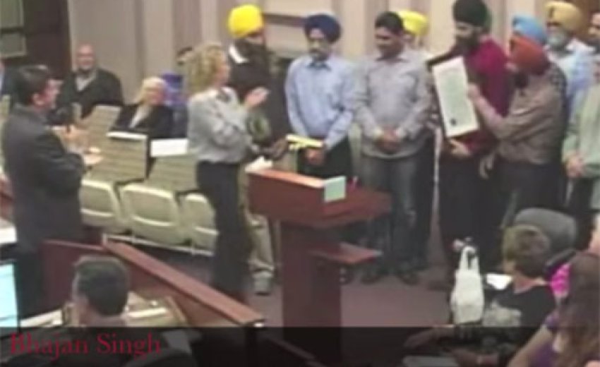 Bhajan Singh then addressed the city council concluding with the statement: "We applaud the leaders of our great nation, great people, people like Martin Luther King who showed the way, who gave us courage that [we should] never, never, never give up on your fellow Americans. And today we are VERY proud to be Americans and share our sorrow, our happiness and our joy with our fellow Americans. Thank you."