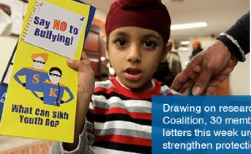 Drawing on research reports published by the Sikh Coalition, 30 members of the United States Congress signed letters this week urging the U.S. Department of Justice and U.S. Department of Education to strengthen protections against school bullying.