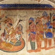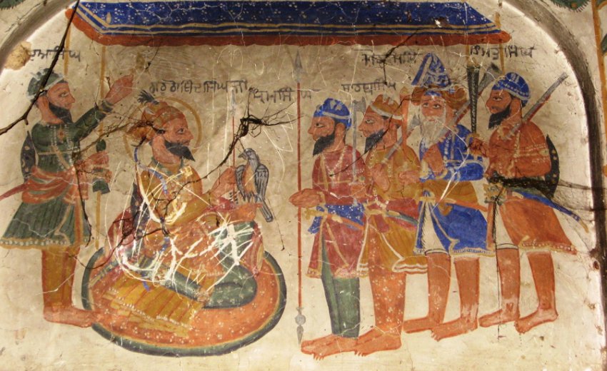 Head Pic: Painting of Guru Gobind Singh ji with his Khalsa soldiers in a Sikh Samadhi at Kot Fateh Khan Samadhi Architecture in Potohar, Punjab (Pakistan)