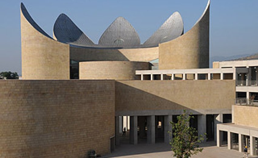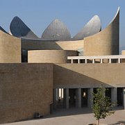 The Heritage complex.... Virasat e Khalsa is located in the state of Punjab and is sited overlooking the town. Divided into two sections that straddle a ravine, the memorial is joined by a 540-ft long pedestrian bridge over a network of reflecting pools. The western side, which is connected directly to the town, features exhibition galleries, a two-level library centred around a grand reading room that overlooks the water gardens, is a facility for storing rare archival materials, and a 400-seat auditorium.