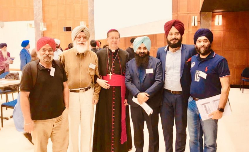 Note: Header Pic - Sikh Delegates with Bishop Miguel at the WCC Geneva Christian-Sikh Conference - (left to right) Swaranbir Singh (UK), Col Manmohan Singh (India), Bishop Miguel Angel Ayuso Guixot, Parampal Singh (India), Karanvir Singh (Switzerland) , Inderpreet Singh (USA). © ASEEN