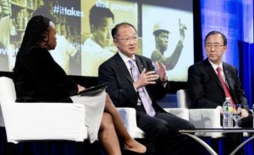 | World Bank Group President Jim Yong Kim joined UN Secretary-General Ban Ki-moon for Global Voices on Poverty, an event featuring world leaders, opinion makers, and a global online audience discussing what it takes to end poverty. Ryan Rayburn/World Bank |
