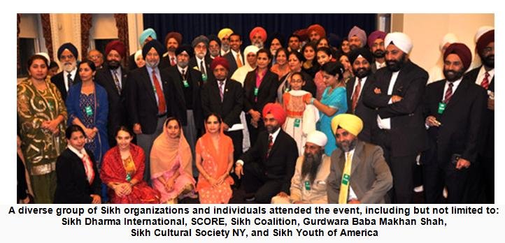 Some of the other Sikhs who attended were: Bibi Inderjit Kaur, wife of Late Harbhajan Singh Yogi, from Espanola, New Mexico, Tehel Singh, President of Sikh Cultural Society, the largest Gurdwara in New York, Satjiv Singh Chahil, a top official of computer giant company Hewlett-Packard, Baldev Singh Grewal, owner and publisher of large Punjabi newspaper, Sher-e-Punjab, Dr. Kanvarjit Singh Bedi from Cleveland, Kartar Singh Khalsa from Virginia, Rana Singh Sodhi from Phoenix, Arizona whose brother Balbir Singh Sodhi was killed after 9/11 in a hate crime, Surinder Singh Raheja from Virginia, Harpreet Singh Sandhu from California, Harpreet Singh Everest from Yuba City, California, Bhupinder Singh Bhurji, representative of Namdhari community in US, Dr. Charn S Nandra, Mohinder Singh Taneja, Darshan Sing Bajwa, Gurbhej Singh Waraich, Madan Mohan Singh, Bhupinder S. Boparai, Jatinder Singh Sabharwal from Texas, Gurcharan Singh from the World Bank, Paul Kandhari and Inderpal Singh Dhall, officials of Long Island Gurdwara in NY, Amandeep Singh Sidhu of Sikh Coalition and Harpreet Singh of the United Sikhs.