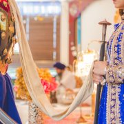 My husband and I had both accepted Amrit a few years before our wedding. We both wore our small kirpans under our outfits, and we also held larger kirpans during the anad karaj.