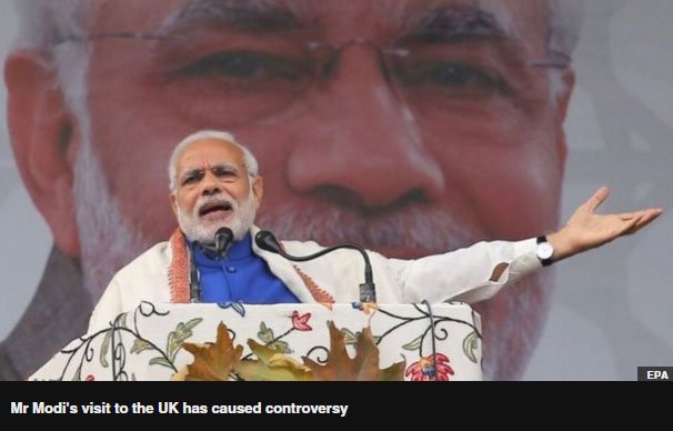 While Mr Modi will be welcomed at Wembley Stadium, and by the Queen and David Cameron, there are likely to be further protests against him.