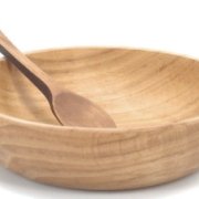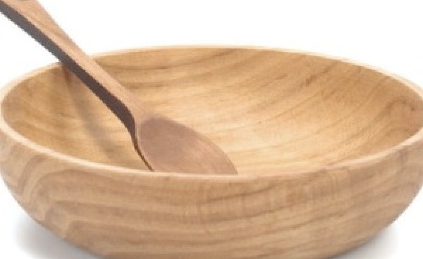 Since Grandfather had broken a dish or two, his food was served in a wooden bowl.