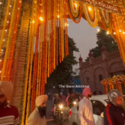 Upon the arrival of the Nagar Kirtan at the Sri Harmandir Sahib Plaza, Bhai Sarwan Singh, Ardasia of Sri Harmandir Sahib, offered Ardas (prayer). Thereafter, the Secretary to Sri Harmandir Sahib, S. Jaswinder Singh Jassi, along with Mukhis Iqbal Singh, Jaspal Singh Dhadde, Satnam Singh, Information Officer Amritpal Singh, and Jatinderpal Singh, extended a ceremonial welcome to S. Rajinder Mohan Singh Chhina, Vice-Chancellor Dr. Mehal Singh, Registrar Dr. Khushwinder Kumar, Academic Dean Dr. Surinder Kaur, Dean Dr. R.K. Dhawan, Dean Dr. Kanwaljit Singh, Joint Secretary S. Gunbir Singh, S. Ajmer Singh Heer, S. Rajbir Singh, S. Parmjit Singh Ball, S. Lakhwinder Singh Dhillon, S. Gurpreet Singh Gill, and Principals of all participating Khalsa institutions, honouring them with Siropas (robes of honour).