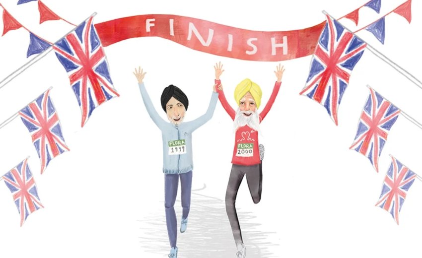 That evening, I sat down to read the book for the first time with my own family. My three-year-old squealed with joy when I turned to the page of Fauja Singh doing his daughter’s hair: “Hey! That’s you and me every morning!”