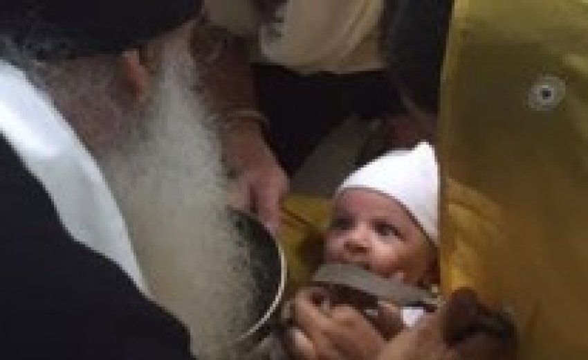 It is a ceremony called the Janam Sanskar - the initial rites of a new born.