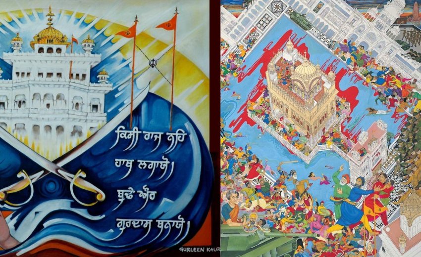Here is a painting by Kanwar Singh Dhillon showing the timelessness of Akal Takhat as well as the tragedies of 1984.