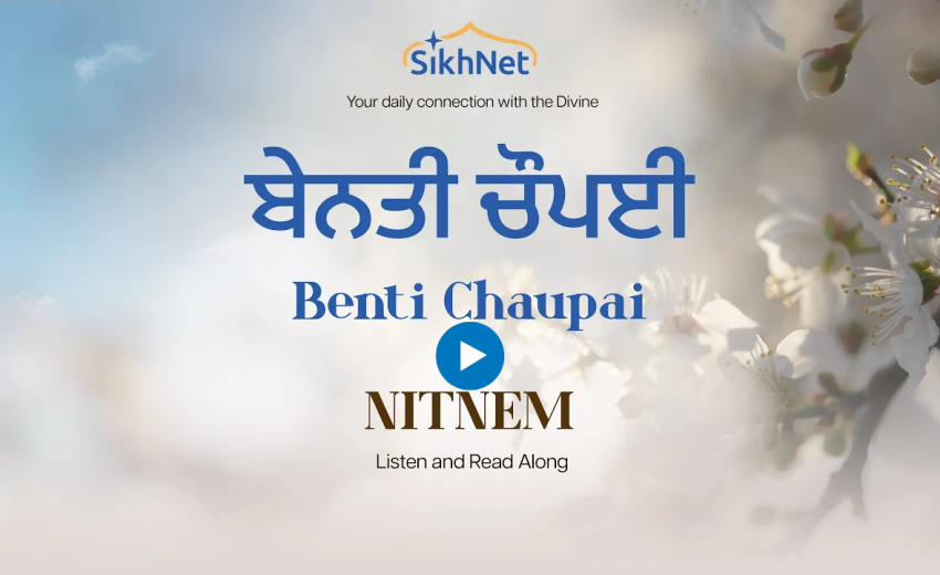 Benti Chaupai, also known as Chaupai Sahib, is a powerful prayer composed by Sri Guru Gobind Singh Ji, the tenth Sikh Guru. It appears in Sri Dasam Granth Sahib Ji and is one of the five morning Banis recited by initiated Sikhs (Amritdhari).