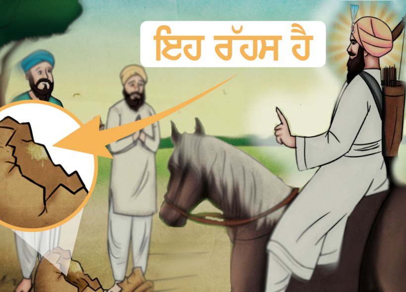 He waited a few days until everyone was riding somewhere together on their horses. Guru ji had them all stop and asked, “Do you see that pot over there?” “Yes, my Guru, that broken pot on the ground? Yes I see it!" “Go bring a piece of the pot.” One of the Sikhs brought a piece of the clay pot over. The pot used to have butter in it, ghee actually. It had been laying in the sun and the ghee had melted into the sides of the pot. The shiny ghee left a streak down the inside of the piece.