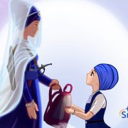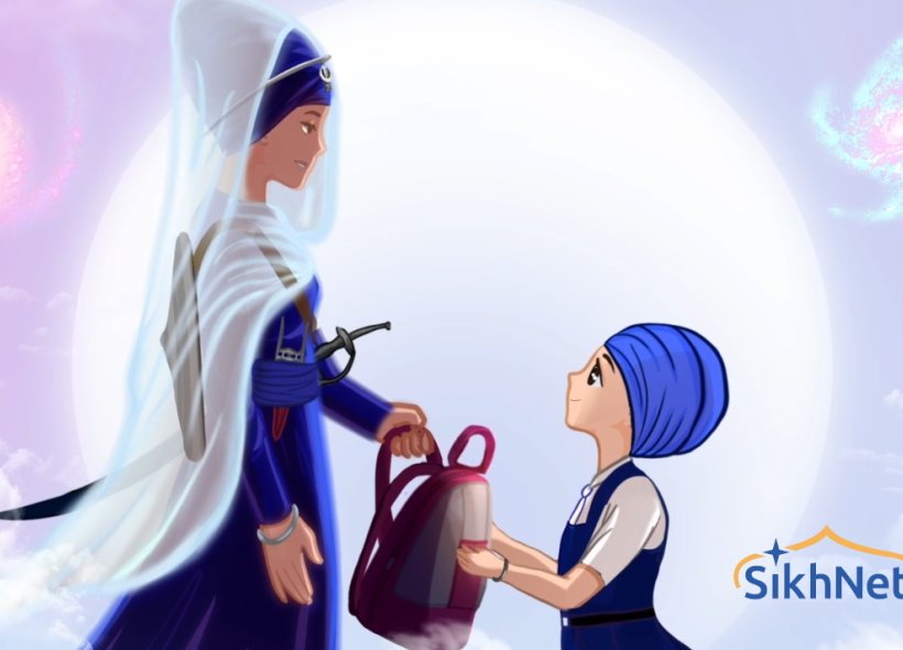Her Mom hurries her along by telling Jind that they are running late, and Jind grabs her backpack and runs into the car. As the car pulls into the school building her mom reminds Jind that although she may be scared to remember, "Gur poore meri rakhlaee. Guru ji will always protect you."