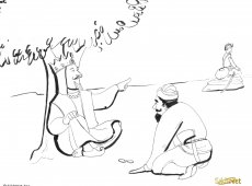 In that moment he realized that it was the Sikhs who called the Guru "True Emperor" naturally. Guru Hargobind had not told them to say this; it was said with love and purity by his Sikhs. So Jahangir admitted to the grass-cutter, "I am not the True Emperor. I am false. You can find your True King over there." The Grass-cutter picked up his penny and ran to where the Guru sat, "O Guru...." He prayed at the feet of the Guru and Guru Ji blessed him, "Always be sweet and humble in your words and actions. Love everyone and hate no one. Work honestly and share what you have. Always be good to others and always be fair. God is with you every moment of your life, just remember God in every moment. Follow the teachings of the Guru and you will be happy in this world and the next."