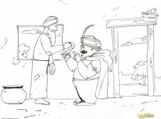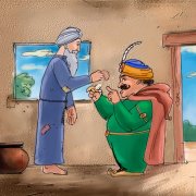 So the next day they dressed as commoners and rode off to see a man who lived in the kingdom. When they got there they saw that it was just a small hut. Inside there was an old man who wore old clothes and didn’t have many possessions. The king thought, “How can a man who has nothing be greater than me? I don’t believe it.” But the adviser convinced him to stay calm and just follow along. The old man invited them to sit down so he could feed them.