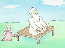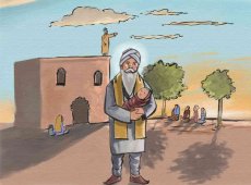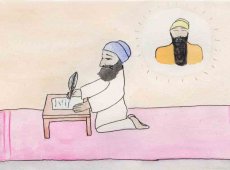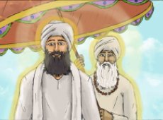 Amar Das ji rode to meet the True Guru. The Guru and Amar Das ji were related and Amar Das ji was a couple decades older. When Amar Das ji saw his saintly face, instead of hugging the Guru, Amar Das ji fell on his knees and said, "Please don't consider me your relative and don't even consider me your elder. Just take me as a student and show me the right path!" Amar Das ji devoted himself to the Guru's service for the rest of his life.