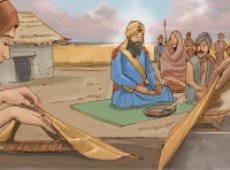 Guru Angad woke up in the early morning. He was thirsty, and he asked his sons to bring him water, but they said that it's raining outside and we would have to go to the lake to get water. Bhai Amar Das saw this happen, and he felt the need to serve his Guru. He went outside during the great storm to bring the Guru some water.