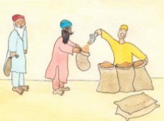 When he was a teenager, Guru Nanak had the job of weighing grain. Sometimes he would accidentally give too much grain. When his boss heard about this he came over to see how much Nanak had given away for free. To his surprise there wasn't less grain than there should have been, there was more grain than there should have been! Guru Nanak was again protected because he was joined with God.
