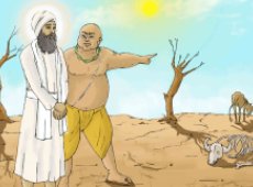 There was a great drought, no water to drink or to grow food. Animals were died and the farmers became scared and desperate. A Brahman monk told the farmers, "The reason why there is a drought is because you are giving respect to a man who is not a Brahman. Everyone is treating this 'Guru Angad' like a holy man. Kick him out and I will bring the rain. The farmers listened to the monks false promise. What will Bhai Amar Das do when he hears the Guru was kicked out for this nonsense.
