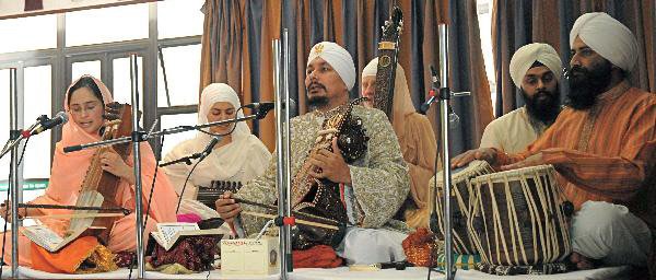 Surinder Singh and Raj Academy students reciting melodiously a shabad from the new Partaal album at Sri Guru Singh Sabha |